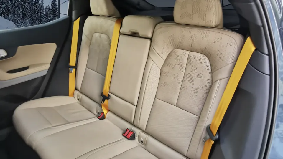 Wie wir uns das vom schwedischen Autohersteller gewöhnt sind, besticht der Wagen innen wie aussen durch eine hochwertige Verarbeitung. Im Innenraum bietet sich eine interessante und farblich schön abgestimmte Materialwahl mit nachhaltig produzierten Holzdekorelementen, Klavierlack und textilen Elementen. Bei diesen stellt sich allerdings die Frage, wie pflegeleicht die sind, wenn die Kleinen mal nach dem Ladestopp beim McDrive mit fettigen Fingern darauf rumtapsen sollten. Auffallend ist auch die Liebe zum Detail, wie zum Beispiel die Projektion eines kleinen Polestar Logos auf das beeindruckende Panoramaglasdach. In der Performance Variante zieht sich bei Sicherheitsgurten und Bremszangen das sogenannte schwedische Gold als Signature Element durch. Etwas Abzug gibt es allerdings beim Raumgefühl. Angelehnt an das konstruktionsbedingte Design eines Fahrzeugs mit Verbrennungsmotor, wurde beim Polestar auch ein Mitteltunnel verbaut, der Fahrer- und Beifahrerseite voneinander trennt und den Raum aus unserer Sicht unnötig verengt.